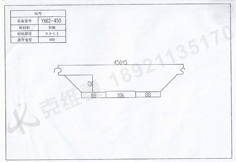 ![]() 產品名稱:92屋面板YX62-450