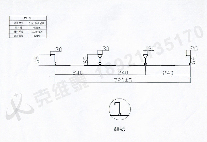 ![]() 產(chǎn)品名稱:15閉口YX65-240-720